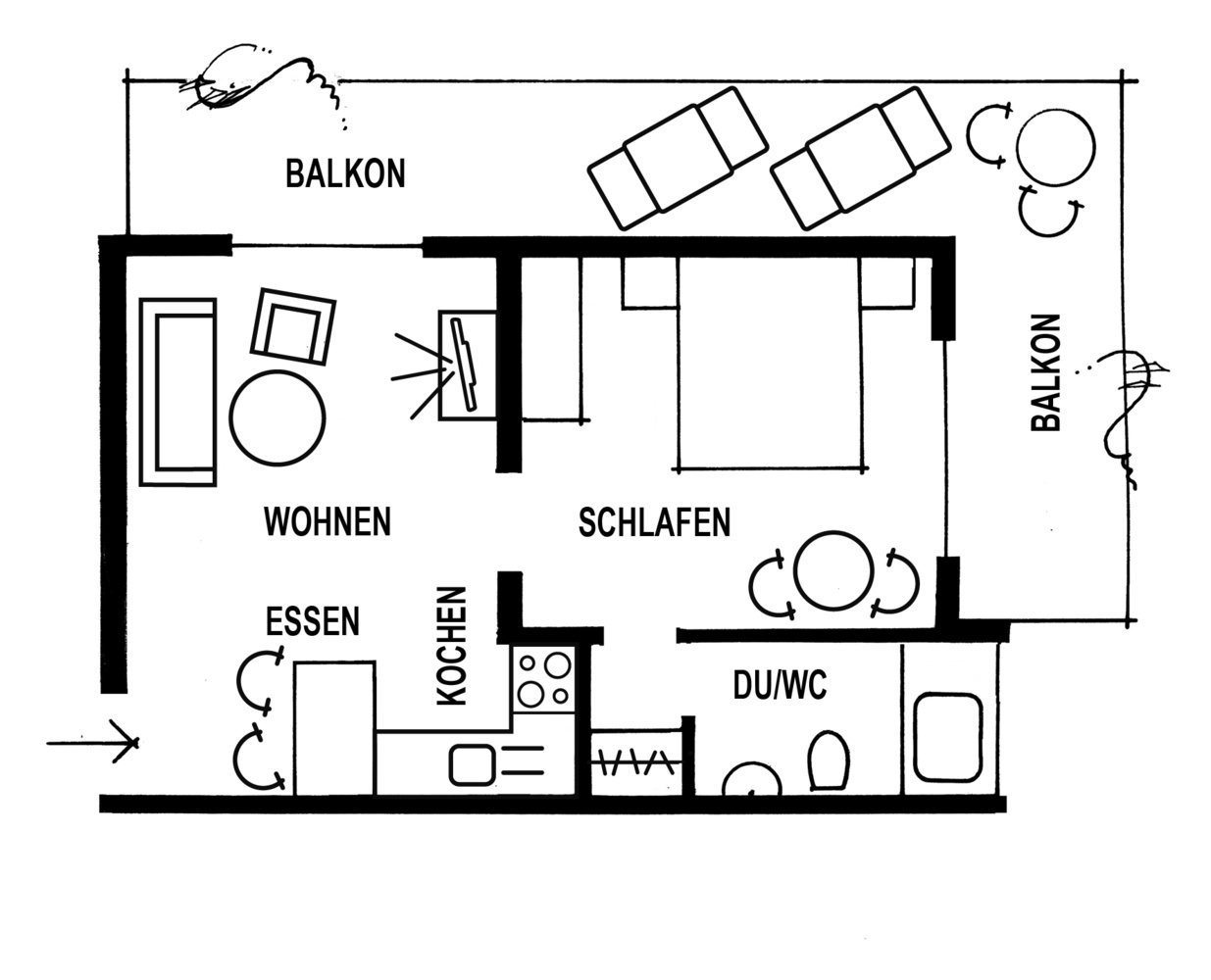 FerienwohnungenUnsere komfortabel eingerichteten, geräumigen Ferienwohnungen verfügen alle über ein Wohnzimmer, ein Schlafzimmer, eine Küche, ein Badezimmer, einen Balkon sowie WLAN und Kabel-TV. Die Nutzung des Fitnessraums und der Gästewaschküche sind inklusive. Es gibt 5 Wohnungen, die zwischen 50 qm und 70 qm groß sind und Platz für 2 bis 4 Personen bieten.