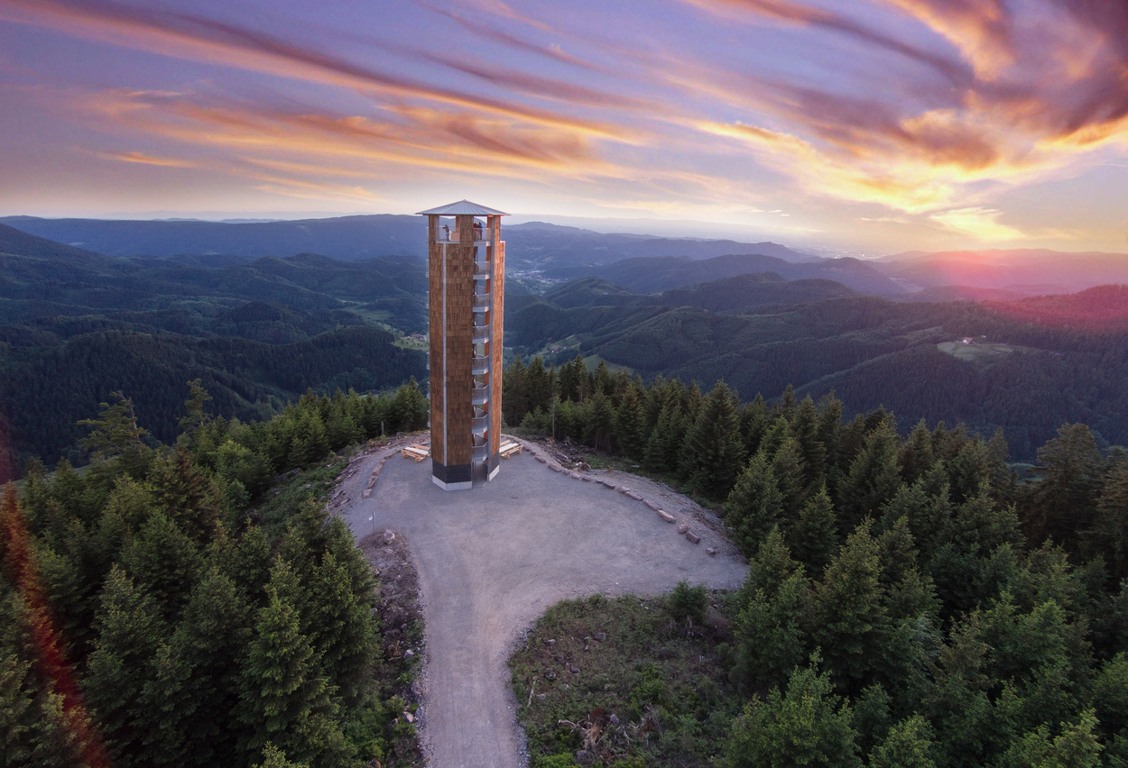Der Buchkopfturm in Oppenau ist 28 Meter hoch. Der Turm entlohnt Wanderer für den Aufstieg mit einer weiten Aussicht über den Schwarzwald sowie die Rheinebene bis zu den Vogesen. Der Turm hat insgesamt 8 Stockwerke in offener Secheckform, welche in Brettsperrholzbauweise gebaut wurden. Stahl unterstützt die Konstruktion. Verkleidet wurde der Turm mit heimischen Weißtannen. Jedes Stockwerk bietet einen Rundumblick. Bis zur Spitze müssen 140 Stufen erklommen werden.