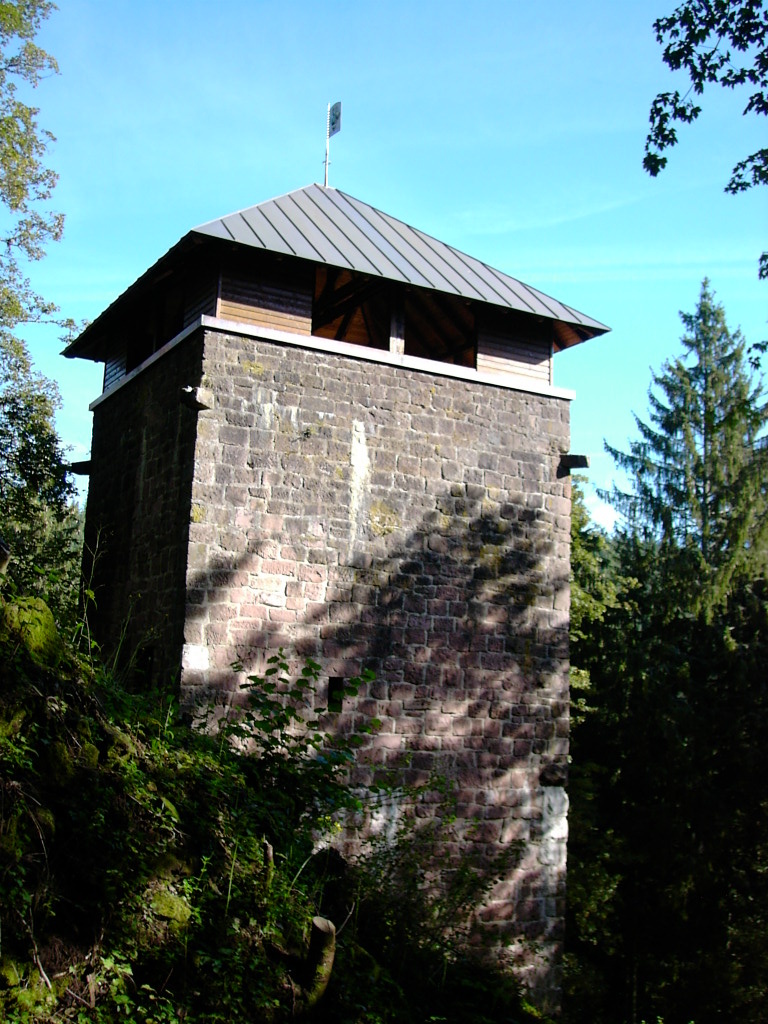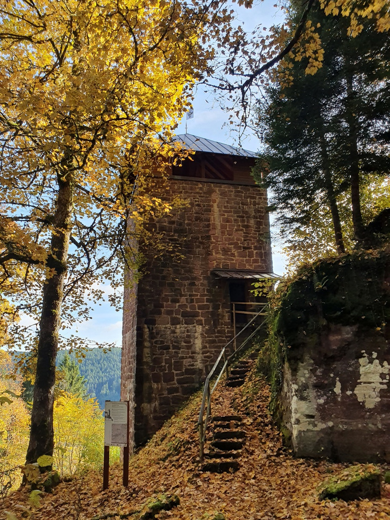 Leider ist bis auf den im 20. Jahrhundert neu aufgebauten Bergfried und ein paar Mauerresten der Burg nicht mehr viel vorhanden.