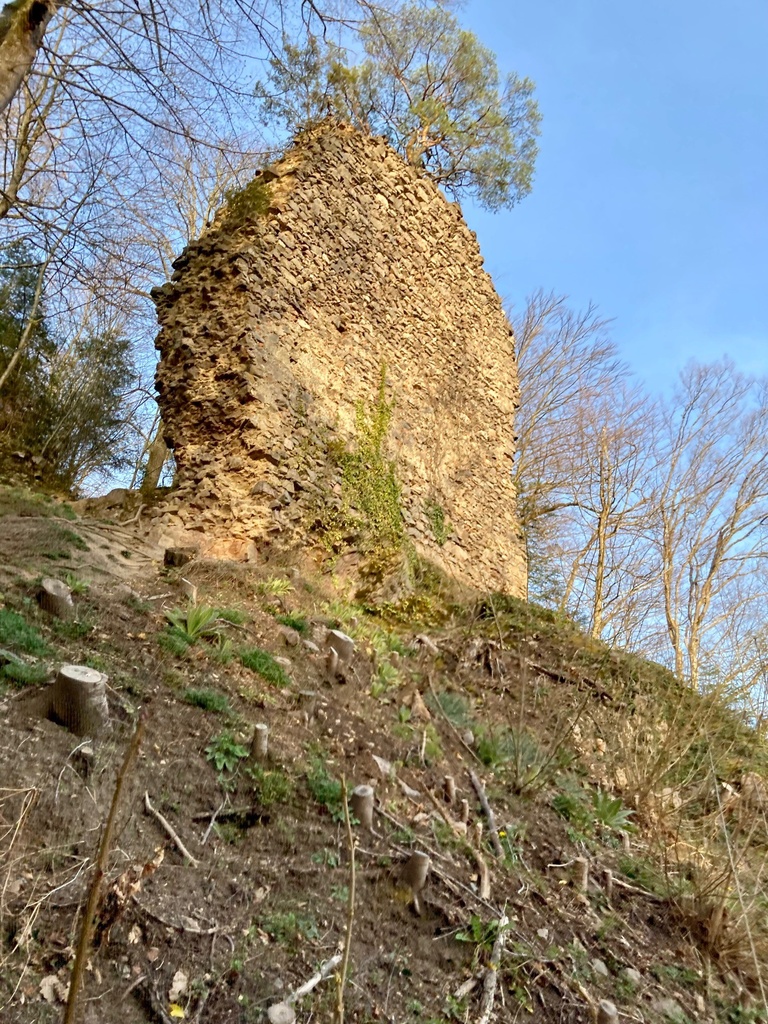 Von der Burganlage Wiesneck, die einst zu den größten der Region gehört haben muss, ist heute leider nicht mehr viel übrig geblieben. Nur noch einzelne Mauerwerke lassen die Ausmaße der einst strategisch wichtigen Festung erahnen.