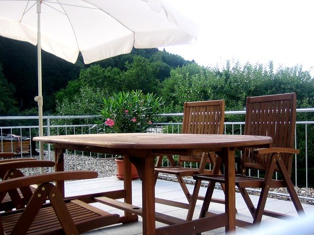 In der modernen Wohnküche finden Sie alles, was zu einer gehobenen Ausstattung gehört: 4-Plattenherd mit Backofen, Dunstabzug, Spülmaschine, Kühlschrank, Wasserkocher und Kaffeemaschine. Vom hellen, geräumigen Schlafzimmer aus haben Sie Blick in den Garten. Das Bad ist mit Dusche, WC und Waschmaschine ausgestattet. Im Wohnzimmer befindet sich eine Sitzgruppe mit Tisch, Sat-TV und Stereoanlage. Die eine Couch ist ausklappbar und ergibt eine zusätzliche Schlafmöglichkeit für 2 Personen (Liegefläche von 1,40 x 2,00 m). Vom Wohnzimmer aus geht es auf die Terrasse, dem "Goldstück" dieser Ferienwohnung. Die gemütlichen Holz-Sitz-Möbel laden zum Entspannen und Essen im Freien ein. Hier können Sie ausruhen und die Aussicht auf die umliegenden Schwarzwaldberge genießen.Bilder: Unsere Ferienwohnung Goldbergblick