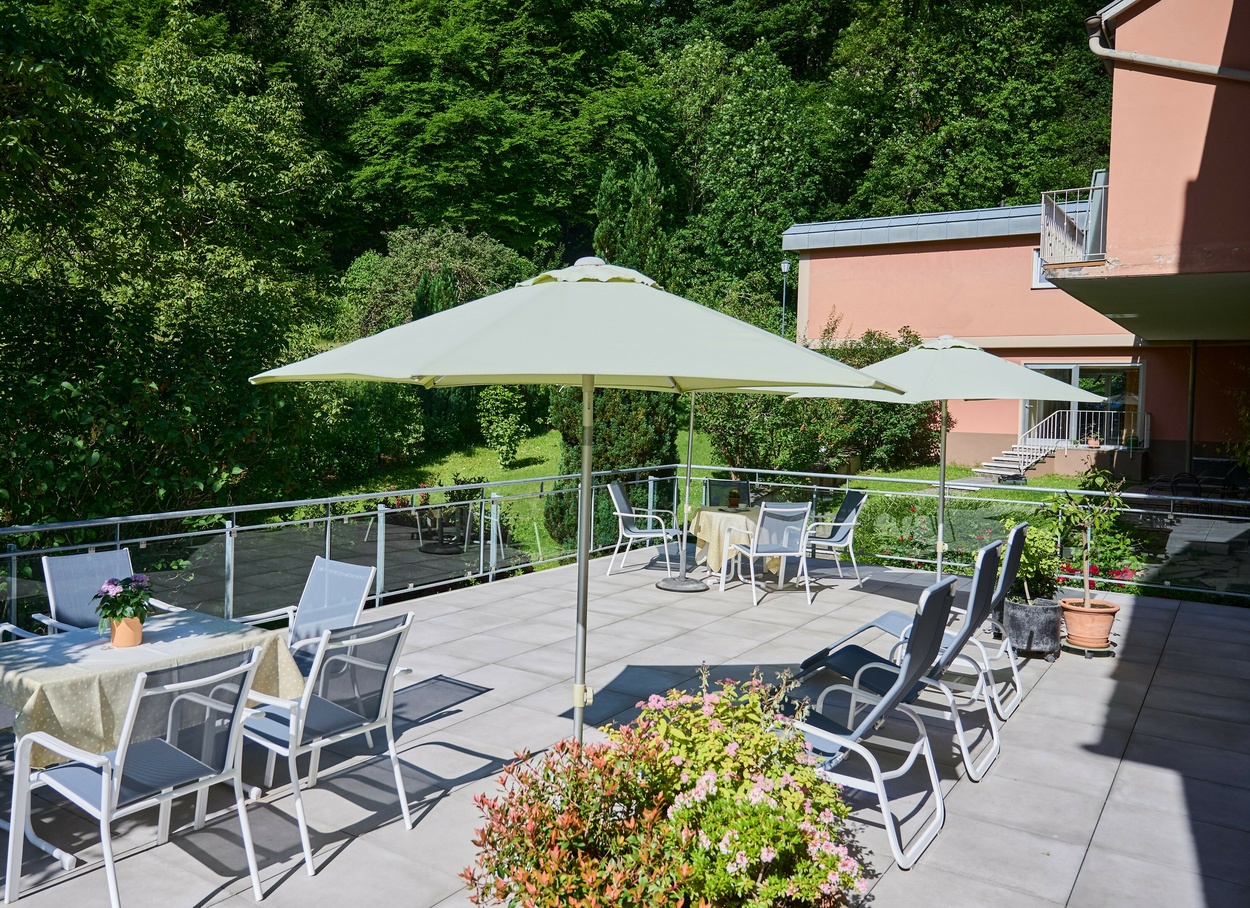 Direkt am Waldrand, oberhalb vom Ortszentrum von Badenweiler, liegt die "Morgensonne". In wenigen Minuten ist man zu Fuß an der Cassiopeia Therme und am Kurpark. Von allen Zimmern haben Sie einen herrlichen Blick in die liebliche Landschaft des Markgräflerlandes und auf die nahen Schwarzwaldberge. Der große Garten mit Liegewiese und die wunderschöne Sonnenterrasse sind besondere Merkmale des Hauses.