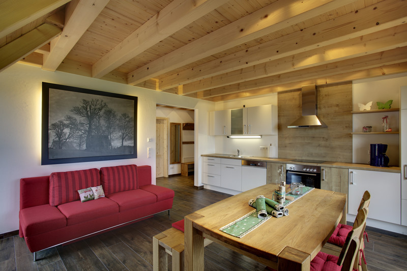 Beeindruckende Schwarzwald - Aussichten bereits vom Balkon oder der wohnungseigenen Terrasse aus, rustikale hochwertige Massivholzmöbel im modernen Landhausstil - zum Teil handgefertigt ! - sehr gut ausgestattete Küchen, einladende Badezimmer mit Regenduschen, Fußbodenheizung, gemütliche Couchbereiche mit LED-TV ...und viele liebenswerte Kleinigkeiten werden zum unvergesslichen WOHLFÜHLERLEBNIS.