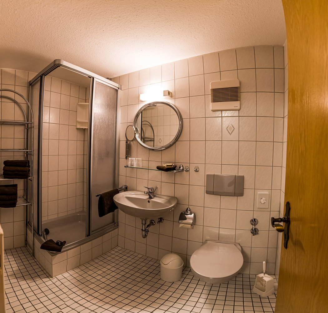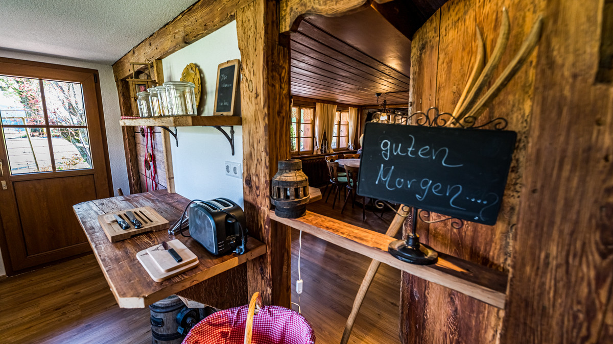 - Wasserkocher, Kleingeschirr, Minikühlschrank in den Gästezimmern