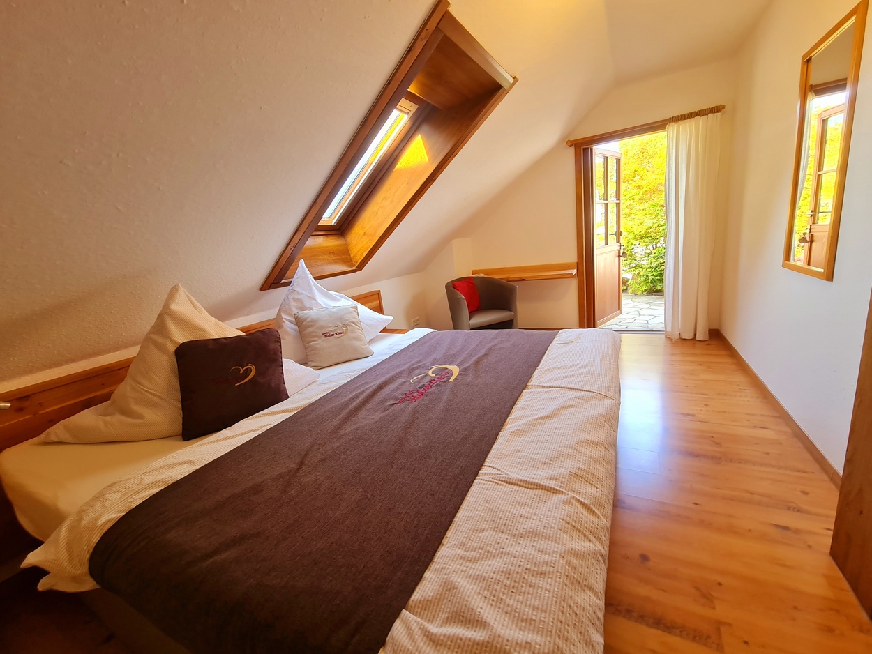 Auf idyllischen 784 Meter steht ein 300 Jahre altes, sanft renoviertes Schwarzwaldgasthaus mit Atmosphäre, welches sich seit 1914 in Familienbesitz befindet. Genießen Sie den kleinen, feinen & liebevollen Wohnkomfort in den gemütlichen Gästezimmern und Ferienwohnungen. Sie sind alle voll ausgestattet und komfortabel. Es gibt Platz für 1-4 Personen pro Zimmer bzw. Wohnung. Besonders ein erholsamer und hoher Schlafkomfort wird groß geschrieben. Betten Sie sich bequem in Boxspringbetten.