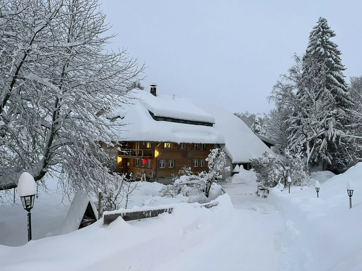 Im Außenbereich können Gäste jederzeit unsere weitläufige Wiese, die Terrasse oder die Feuer- und Grillstelle am Bach nutzen. Liegestühle und Gartenmöbel stehen bereit. Ein Parkplatz steht direkt am Haus zur Verfügung, ebenso Unterstellmöglichkeiten für Fahrräder oder Ski. Eine Ladestation für E-Autos ist vorhanden (kostenpflichtig), E-Bikes können selbstverständlich geladen werden.