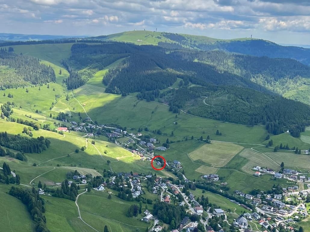 Ab auf den Berg! Naturnahe Unterkunft für Urlaub, Auszeit, Freizeit im sonnigen Hochtal im Südschwarzwald. Freistehend, in ruhiger Lage, auf 1.020 m Höhe mit Weitblick und viel Platz direkt am Bach.zur Unterkunft