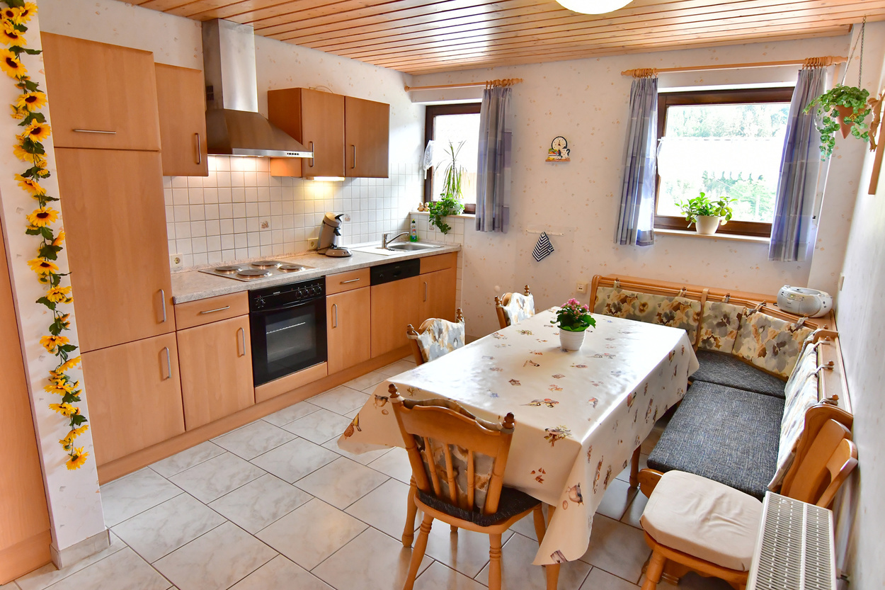 Ferienwohnung Panoramablick mit ca, 105 qm für 2-6-7 Personen,3 Schlafzimmer, 1 Wohnküche mit Spülmaschine, SAT-TV, Dusche/WC, Spielplatz, Grillplatz, Nichtraucherwohnung