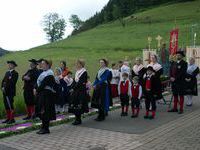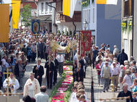 Am Festtag selbst bewegt sich über ihn unter Böllerschüssen, begleitet von Trachtenträgern, den Abordnungen der Vereine und unter den Gesängen von Chor und den Klängen der Trachtenkapelle die heilige Prozession.