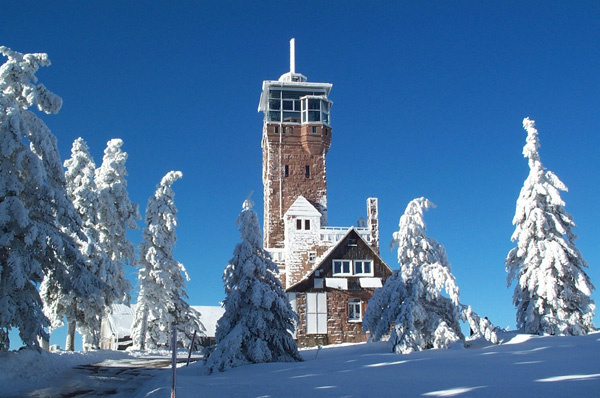Ein wunderschöner Aussichtsturm, der sich malerisch in seine Umgebung einfügt schmückt die Spitze der Hornisgrinde. Hoch auf dem Turm eröffnet sich den Besuchern eine herrliche Aussicht bis ins Rheintal, nach Straßburg, die Vogesen und die umliegenden Schwarzwaldtäler. Das 23 Meter hohe Gemäuer erweckt den Eindruck einer Hinterlassenschaft von einer alten Burg. Seine Existenz verdient der Turm allerding der Initiatives des Badischen Schwarzwaldvereines. Die Kupfertafel am Eingang hält die Fertigstellung im Jahr 1910 fest.