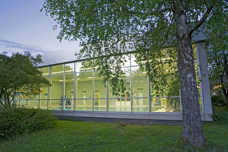 Hallenbad mit Spiegeldecke, die das Rückenschwimmen erleichtert, verstellbarer Wassertiefe, Kursangebot und jährlichem Kinderschwimmfest.