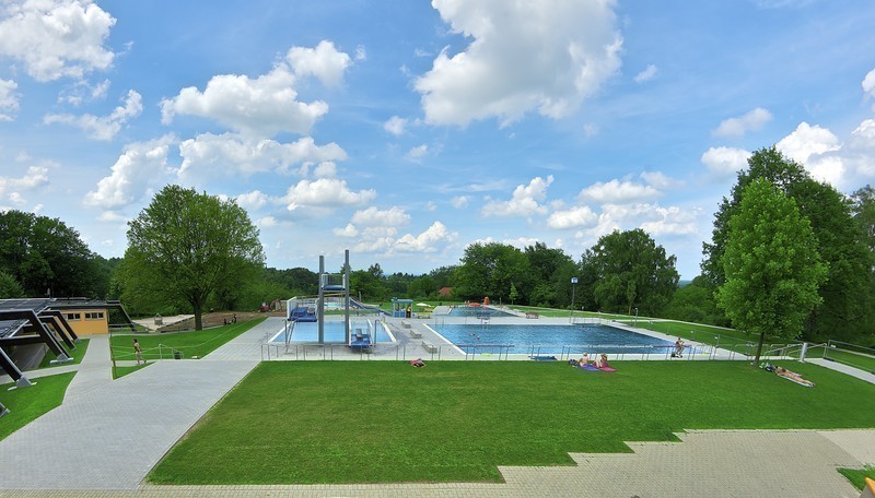 Das neu renovierte Bad verfügt über ein großes Nichtschwimmerbecken mit Breitwellenrutsche und Wasserpilz, ein separat gelegenes Kinderplanschbecken mit Wasserigel, Wasserkanone, Babyrutsche und Wasserspiel, ein Schwimmerbecken und ein Becken mit Sprunganlage.