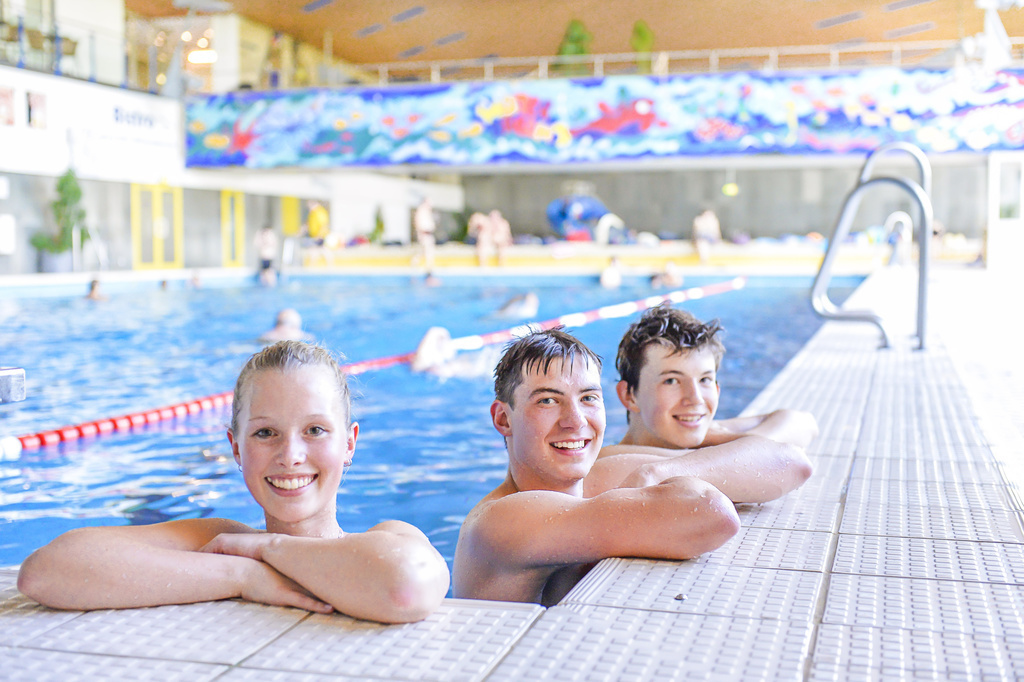 Im Schwimmerbecken geht es sportlich zu, das Nichtschwimmerbecken und das Kinderplanschbecken bieten Badespaß pur und sowohl die Unterwasserdüsen, Geysiren und Fontänen im Nichtschwimmerbecken als auch die Dampfgrotte und der Whirlpool im Wellnessbereich sorgen für wohltuende Entspannung.