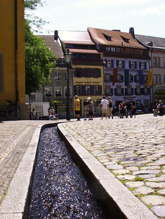 AugustinerplatzSüdlich des Münsterplatzes findet sich einer der schönsten Plätze Freiburgs, der Augustinerplatz. Sanft über einen kleinen Hügel geschwungen, umgeben von Museen, Cafés und natürlich den Freiburger Bächle, ist er Seele und Ruhepol der Stadt. Bekannt ist der Platz auch für geselliges Zusammensein, insbesondere an lauen Sommerabenden, wenn sich jung und alt überall auf dem Pflaster niederlassen, um zusammen, das besondere, zauberhafte Ambietene zu genießen.
