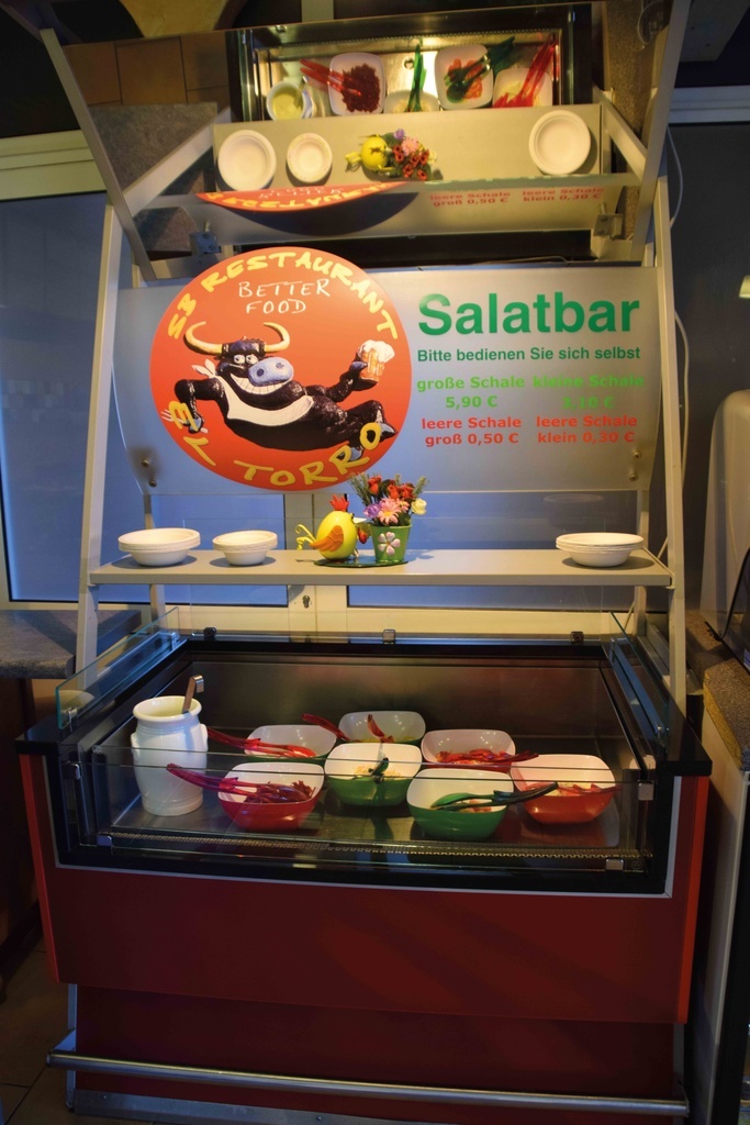 Unser selbstbedienungs-Restaurant El Torro bietet Ihnen ein Salatbuffet und eine Vielfalt an heißen Speisen.