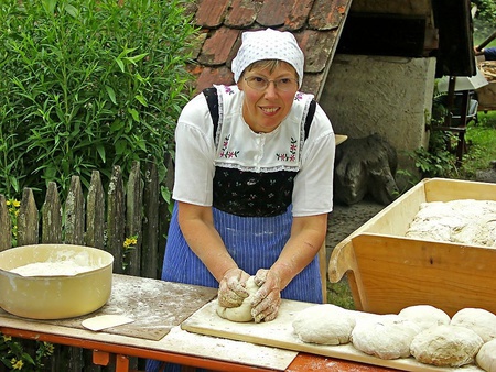 Während der Saison zeigen über 30 Handwerkerinnen und Handwerker ihre verschiedenen Handwerke. Fast täglich kann man einige von ihnen in und vor den Häusern erleben, wenn sie ihre Kunst von Strohflechten über Küfer und Bürstenbinderin bis zu Bollenhutmacherin, Schäppelmacherin oder Gollerstickerin zeigen.Zwei Mal am Tag hört man plötzlich ein Klappern und leises Klingeln, wenn die Getreidemühle von 1609 angeworfen wird. Bald dreihundert Jahre wird in dieser Mühle Getreide, vor allem Roggen gemahlen. In genialer Mühlentechnik ist der Mühlenmechanismus mit einer Stampfe verbunden, die zum Entfernen der Spelzen dient. Während der Raum vom Stampfen erbebt erklären Mitarbeiter des Museums geduldig alle Fragen der Besucher. Um 14.30 treffen sich jeden Tag Einzelbesucher, die eine kostenlose Führung mitmachen.